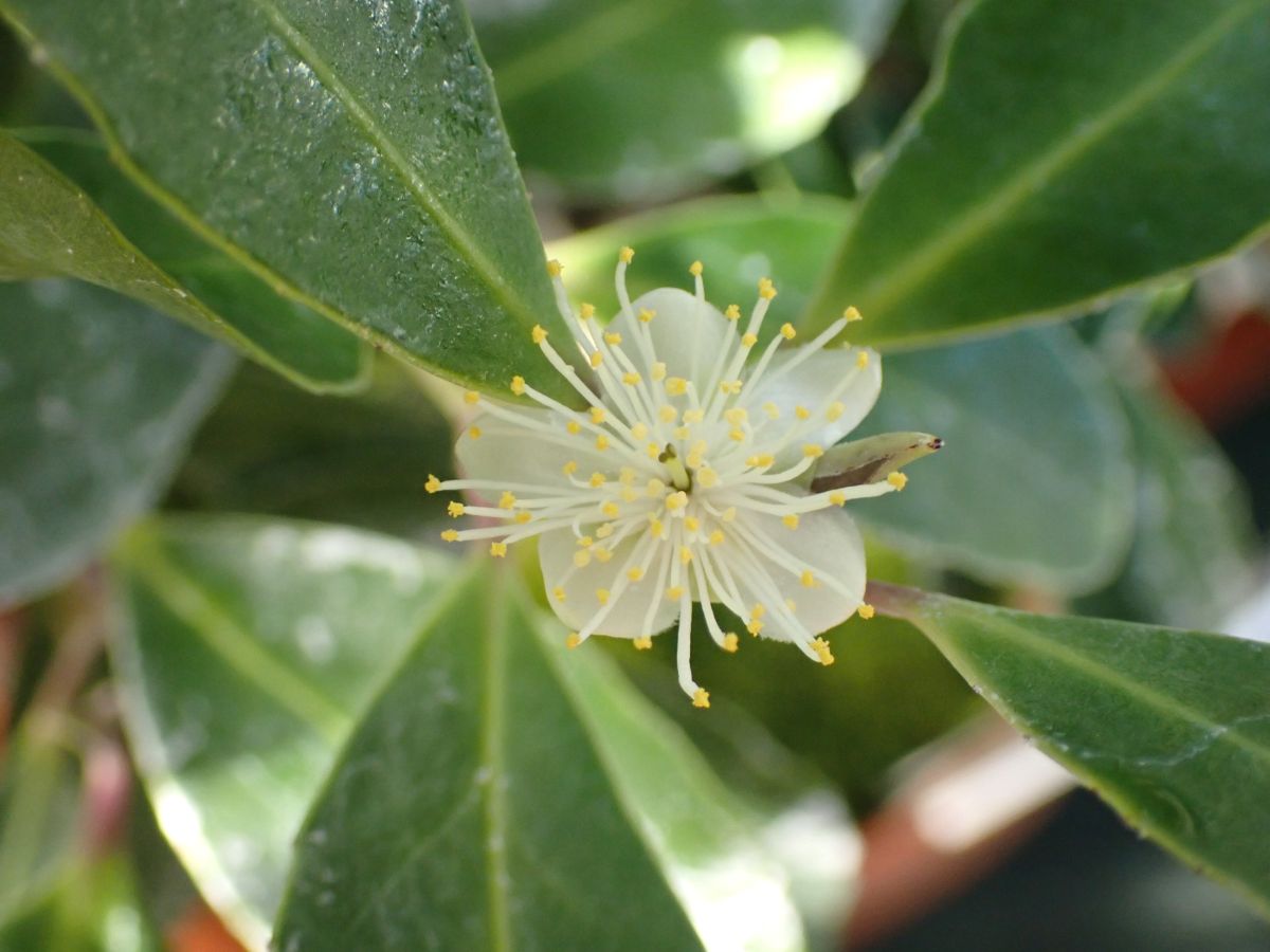 温室では他に、ホヤ属各種、ラン科各種、サンタンカ、シマムラサキツユクサ、ヒイロサンジコ、リュウキュウツワブキ、オオハマボッス、オガサワラモクレイシ、モノフィレアなどが開花しています。