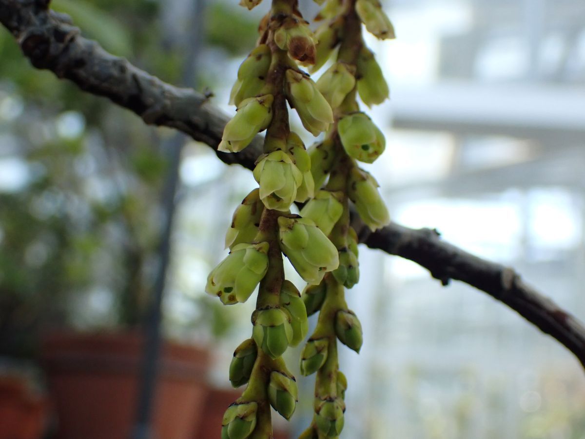 温室では他に、ホヤ属各種、ラン科各種、キンカチャ、シマムラサキツユクサ、ムコジママンネングサ、リュウキュウベンケイ、オオハマボッス、オガサワラモクレイシ、モノフィレアなどが開花しています。