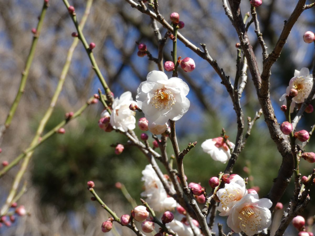 園内では他に、ウメ各品種、サザンカ各品種、ツバキ各品種、ウグイスカグラ、シナマンサク、シマサザンカ、マンネンロウ、ミヤマガンショウ、ユキワリイチゲなどが咲いています。